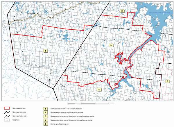 | Начало | "Кутса" | "Терский берег"| "Хибины" | "Лапландский лес" | Карта 10. Состав земель предлагаемой к охране территории |