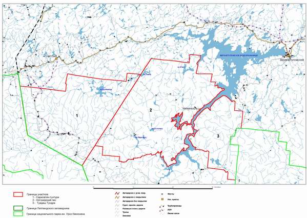 | Начало | "Кутса" | "Терский берег"| "Хибины" | "Лапландский лес" | Карта 11. Схема транспортного освоения территории |