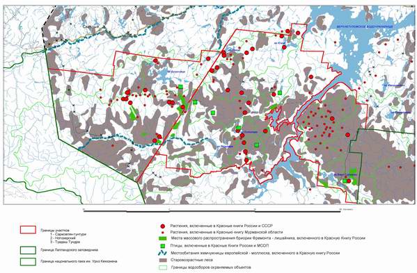 | Начало | "Кутса" | "Терский берег"| "Хибины" | "Лапландский лес" | Карта 13. Схема размещения объектов охраны |