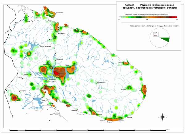| Начало | "Кутса" | "Терский берег"| "Хибины" | "Лапландский лес" | Карта 2. Редкие и исчезающие виды сосудистых растений в Мурманской области |