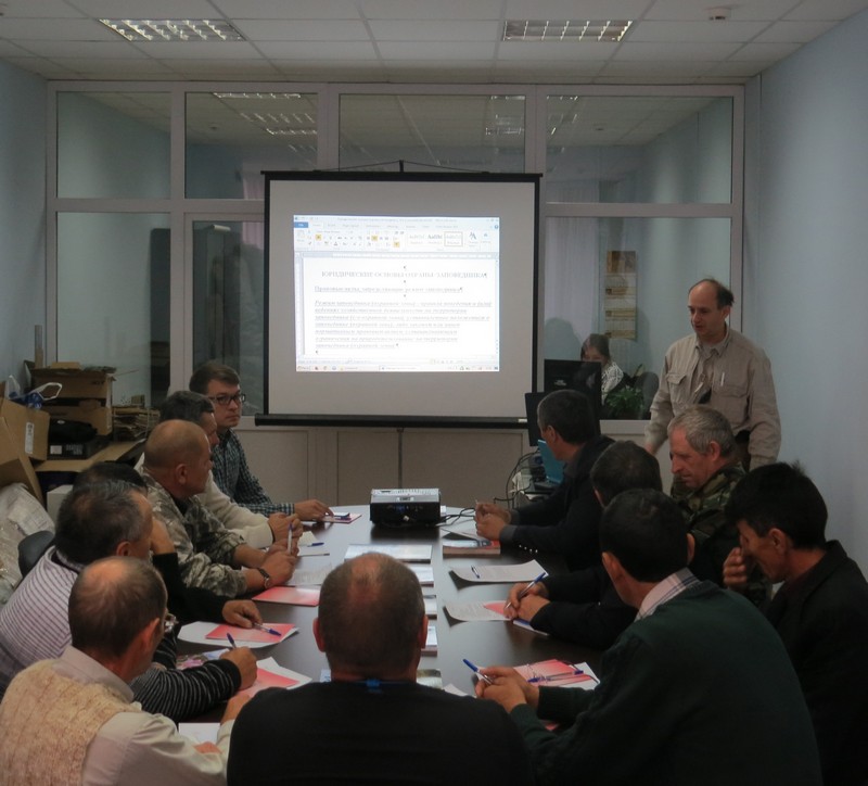 Вел семинар руководитель программы по ООПТ Гринпис России, эксперт по законодательству Михаил Крейндлин. В обучении участвовали заместитель директора по охране А.А. Латыпов и 15 государственных инспекторов заповедника.