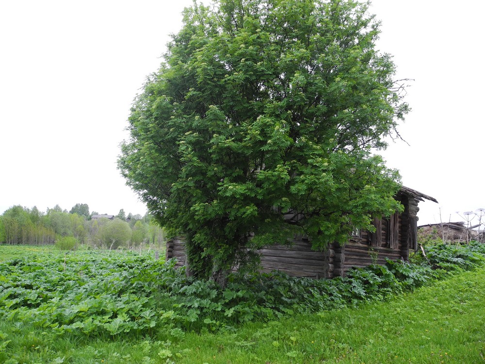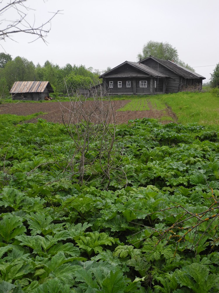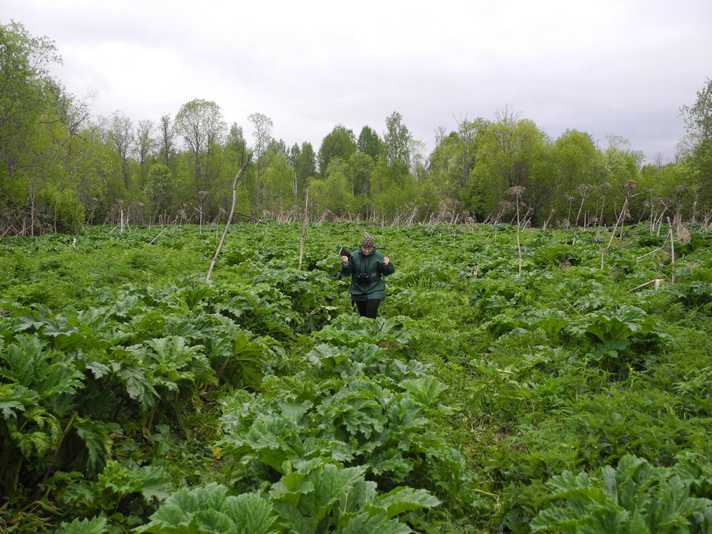 В середине июня 2017 г. довелось побывать в Вологодской области на учете гнездящихся птиц. В один из дней маршрут проходил через деревню Мосеево (20 км от Тотьмы), это административный центр сельского поселения. В Мосеево ходит автобус, здесь есть магазин, здание администрации, работает животноводческая ферма – в нескольких больших коровниках стоят коровы, их доят. Рядом расположены обрабатываемые поля, небольшой лес, за ним – клюквенное болото с озерами. Вроде все неплохо, но... Сможет ли эта деревня выжить – большой вопрос. Виной тому – борщевик Сосновского, который заполонил Мосеево и ближайшие окрестности. Его, судя по всему, сажали здесь в свое время на корм скоту, как и много где по стране.