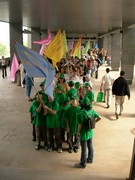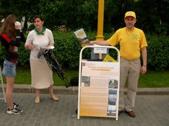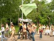 05.06.2006 Московские охраняемые территории отпраздновали Всемирный день окружающей среды 4 июня природные парки и заказники г. Москвы провели на Воробьевых горах праздник, посвященный Всемирному дню окружающей среды. Мероприятие было организовано дирекциями столичных особо охраняемых природных территорий (ООПТ) при поддержке Департамента природопользования и охраны окружающей среды города Москвы. Участвовали парки и заказники "Воробьевы горы", "Битцевский лес", "Долина реки Сетунь", "Москворецкий", "Теплый Стан", "Долина реки Сходни в Куркино", "Кузьминки-Люблино", "Петровско-Разумовское", "Измайлово", "Тушинский", "Косинский", "Серебряный бор", "Кусково", национальный парк "Лосиный остров", несколько подмосковных охраняемых территорий, а также Фонд развития экотуризма "Дерсу Узала". Началось всё с красочного костюмированного шествия от станции метро Воробьевы горы. Сотрудники парков и школьники, являющиеся их активными помощниками, выстроились в колонну и под разноцветными флагами с названиями охраняемых территорий прошествовали по улице Косыгина до смотровой площадки. В сквере напротив площадки с видом на главное здание МГУ и проходили основные мероприятия праздника. После приветственного слова от представителей ООПТ и общественных экологических организаций были подведены итоги конкурса среди школьников на право участия в экологических лагерях. А затем начали работу различные площадки. Каждый мог поучаствовать в экологической викторине, развлекательных играх, в мастер-классах по изготовлению поделок и сувениров из природного материала. На всех мастер-классах выдавались жетоны, которые можно было обменять в течение праздника на ярмарке подарков. Среди детей прошел конкурс на лучший экологический костюм. В качестве материала для костюмов выступил бытовой мусор: целлофановые пакеты, пластиковые бутылки, фантики, окурки, сигаретные пачки, одноразовая посуда, использованные диски, газеты и т.п. Облаченные в экокостюмы участники и участницы дефилировали по скверу, а обладатели жетонов вручали их наиболее понравившимся "моделям". В конце праздника победители конкурса получили призы. Кроме того, на одной из площадок проходило выступление детского фольклорного ансамбля, а на другой - коллективов бардовской песни. Демонстрировалась фотовыставка "Живой город". На выставке стендов ООПТ можно было узнать более конкретно о каждой из охраняемых природных территорий и получить продукцию с их символикой. А еще каждый из участников мог написать свое пожелание природе на специальном "листике" и украсить им сухое "Дерево Надежды". К сожалению, на мероприятии совершенно незаметны были представители средств массовой информации, хотя одной из главных целей организаторов являлось привлечение внимания к московским охраняемым территориям. Большинство из них образовано совсем недавно, и многие москвичи пока плохо представляют себе, что такое охраняемые природные территории и какие парки и заказники существуют в их городе. Пресс-служба ЦОДП