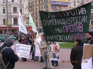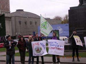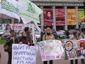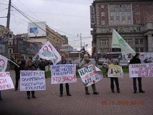 31.10.2006 Олимпийским бульдозером по Всемирному Наследию? 26 октября в Москве на Триумфальной площади у Министерства экономического развития и торговли прошла акция протеста – выступление против уничтожения Сочинского Национального парка и нанесения непоправимого вреда Кавказскому заповеднику, объекту Всемирного природного наследия ЮНЕСКО. Акция направлена на привлечение внимания общественности к проблеме освоения Сочинского района. В рамках реализации Федеральной целевой программы "Развитие г. Сочи как горноклиматического курорта 2006-2014 гг." уже сейчас на землях Сочинского Нац.парка ведется строительство объектов и сооружений. В основном строительство происходит в ходе подготовки к проведению Зимних Олимпийских игр 2014 года в Сочи. К сожалению, реализация этой Программы нанесет непоправимый ущерб уникальной природе Кавказа: вырубаются девственные леса, гибнут редкие виды растений и животных, нарушаются режимы горных рек, - это лишь малая доля реального урона. Пикет пришло поддержать около 40 активистов из Дружины охраны природы биологического факультета МГУ, фракции "Зеленая Россия" в партии "Яблоко", молодежного "Яблока" и других организаций. Случайные прохожие с любопытством оглядывались на громко звучавшие лозунги: "Деньгами природы не заменить – в Нац.парке игры нельзя проводить", "Олимпиада – это класс, но спасите наш Кавказ!", "Биосфера – не мишень для биатлона" и др. Особо акцентировалось внимание на том, что протестующие "НЕ против Олимпиады" и поддерживают социально-экономическое развитие страны, НО Олимпиада в Сочи ценой уникальной природы Кавказа – это непродуманный шаг. Театрализованное действие по продаже участков Сочинского нац.парка и Кавказского заповедника закончилось почтительной минутой молчания. Случайным прохожим "посчастливилось" раскупить все территории за бесценок. На удивление, сочувствующих проблеме было большинство. Люди с понимание и интересом вчитывались в информационные листовки и ставили свои подписи под обращением к Герману Грефу, которое по окончании акции было направлено в Министерство экономического развития и торговли. Попытавшихся прорваться в ряды протестующих представителей "Зеленого патруля Краснодарья" разогнала милиция. Акцию пришли поддержать генеральный директор Центра охраны дикой природы А.В. Зименко, председатель фракции "Зеленая Россия" в партии "Яблоко" и зам председателя партии "Яблоко" А.В. Яблоков. Эта акция протеста лишь первая из серии планируемых на территории России. Seupress@seu.ru