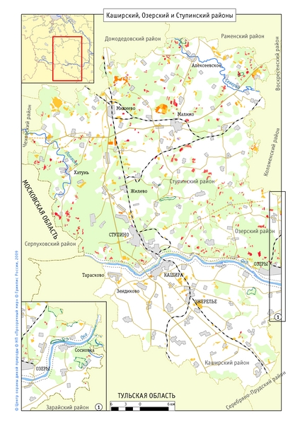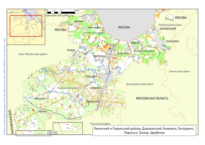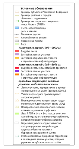 карты были уточнены по сравнению с приводимыми в наших публикациях «Природа Подмосковья: утраты последних двух десятилетий (2009)» , pdf, 10.7 Mb и «Природа Подмосковья: утраты за 1992-2008 годы и современные угрозы. Карта масштаба 1 : 850 000» , pdf, 7.9 Mb