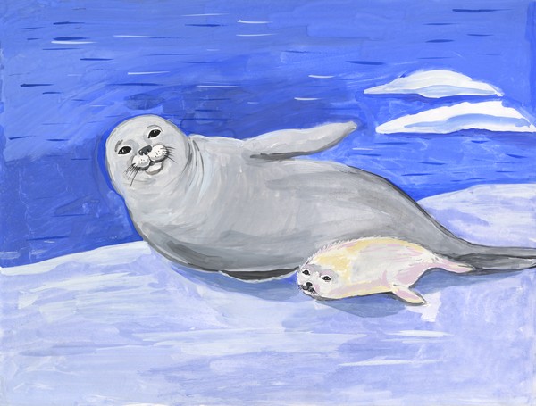 "Байкальская нерпа с мамочкой". Арина Любимова, 9 лет, г. Улан-Удэ