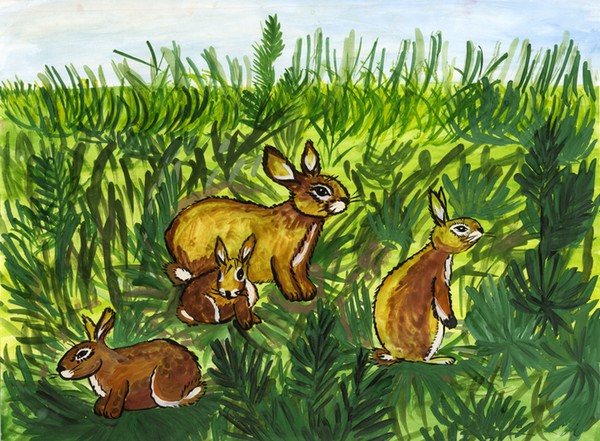 "Семья зайчат". Толя Разоренов, 9 лет, с. Чугуевка, Приморский край