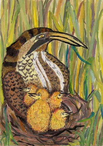 "Амурская выпь с выводком". Настя Герцен, 12 лет, п. Чегдомын, заповедник "Буреинский"