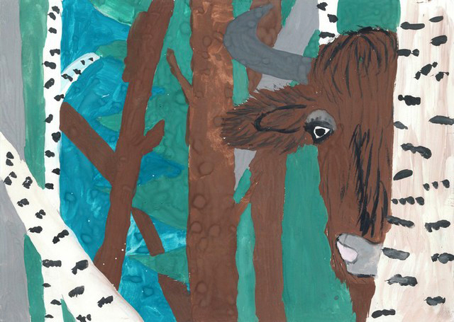 «Стеснительный зубр». Виталий Воробьёв, 8 лет, с. Кирейково, Калужская область