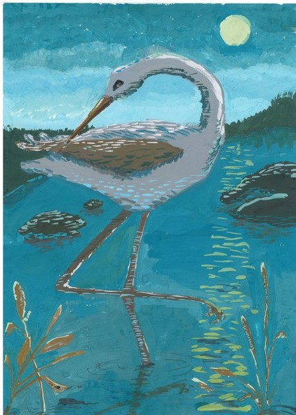 «Цапля на пруду», Даниил Тукусер, 11 лет, п. Хвойный, Республика Карелия