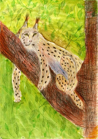 «Рысь отдыхает». Наталья Герасимова, 8 лет, г. Валдай, Новгородская область. Национальный парк «Валдайский»