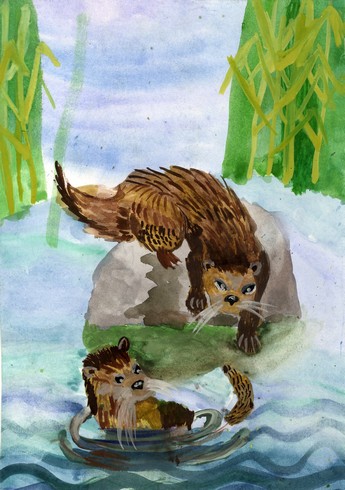«Выдры в воде». Дарья Тупичкина, 7 лет, п. Колышлей, Пензенская область. Заповедник «Приволжская лесостепь»