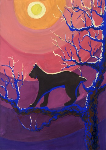 «Рысь на закате солнца». Катя Скрипова, 13 лет, г. Междуреченск, Кемеровская область. Заповедник «Кузнецкий Алатау»