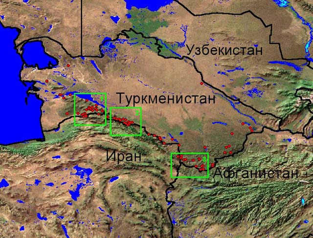 Обручевскую степь. В Восточной Туркмении изолированно обнаружена в районе пос.