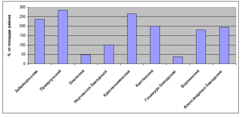 Рис. 4 Площадь пожаров по районам Забайкальского края