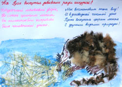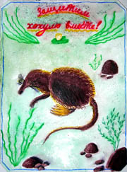 «Люди! Берегите выхухоль, ведь её с каждым годом становится всё меньше и меньше. Ведь если каждый будет уничтожать её то, что получится! Её не останется на земле. Так давайте же защищать её и беречь этого безобидного зверька.»