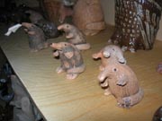 Хохули, сделанные руками ребят из кружка глиняной игрушки (пос. Брыкин Бор, Окский заповедник, Рязанская обл.)