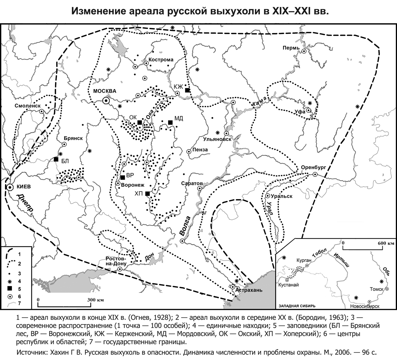 Работа посвящена современному состоянию численности и распространения русской выхухоли. Рассматриваются ее географическое распределение, состояние мест обитания, динамика численности и причины ее падения. Особое внимание уделено мероприятиям, направленным на сохранение и восстановление численности вида в России в условиях возрастающей антропогенной трансформации природной среды.
