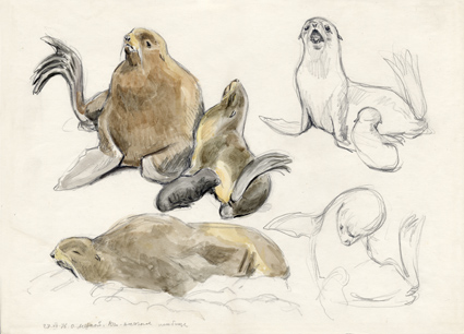 В.М. Смирин. Ушастые тюлени. Наброски с натуры
