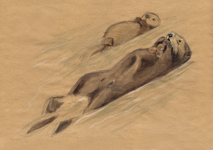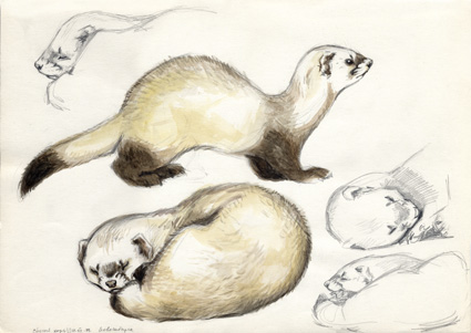 В.М. Смирин. Куньи: лесная куница, степной хорь, калан. Наброски с натуры