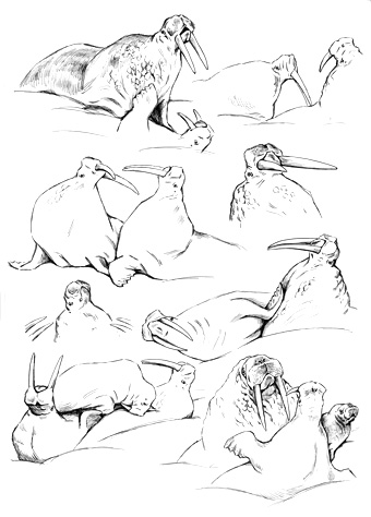 Позы передвигающихся моржей