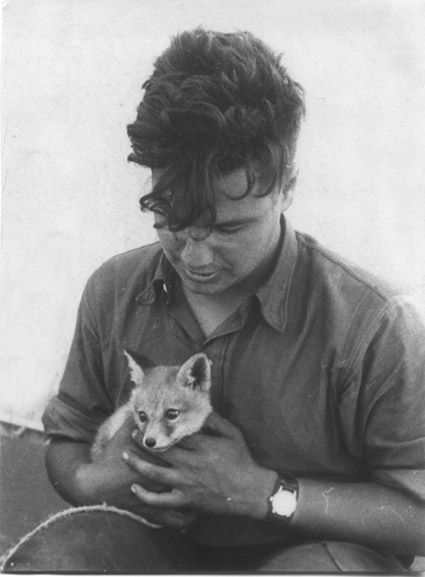 Звенигородская биостанция, 1985. Фото Б.Д. Васильева Детство и юность Владимир Моисеевич Смирин (сам он предпочитал имя Вадим) родился в 1931 году. Родители с детства большое внимание уделяли интересам сына, поддерживали его поиски. В детстве Вадик срисовывал животных из многотомника Альфреда Брема, позже познакомился с книгами Э. Сетона-Томпсона и А.Н. Формозова и полюбил их на всю жизнь. Рисовать животных с натуры начал в эвакуации, в Ташкентском зоопарке. Тогда же он встретил своего первого учителя — Бориса Владимировича Пестинского, герпетолога и художника, который руководил изостудией в ташкентском Дворце пионеров. В 1943 году семья возвращается в Москву. В.М. Смирин поступает в художественную школу, посещает кружок скульптуры при музее-мастерской А.С. Голубкиной, ходит в знаменитый КЮБЗ (кружок юных биологов зоопарка) времен П.П. Смолина. В 1949 году В.М. Смирин становится студентом биолого-почвенного факультета МГУ. Он с уважением вспоминал имена своих университетских учителей — А.Н. Формозова, В.Г. Гептнера, Н.П. Наумова, Г.П. Дементьева. Руководителем его дипломной работы, посвященной биологии копытных Кавказского заповедника, был А.Н. Формозов. По окончании университета В.М. Смирин несколько лет работает в Казахстане, в системе противочумных учреждений, что сыграло немалую роль в формировании его как натуралиста. Краткое, еще в детстве, знакомство с родоначальником российской анималистики Василием Алексеевичем Ватагиным переросло в многолетнюю дружбу. В 1951 году Владимир Моисеевич близко знакомится с ним и вплоть до смерти художника в 1969 году работает в его мастерской. В.А. Ватагина, как и А.Н. Формозова, В.М. Смирин считал главным из своих учителей. Василий Алексеевич научил его работать с твердым материалом в скульптуре, ввел в круг художников-анималистов (А.Н. Комаров, Д.В. Горлов, В.В. Трофимов и др.), был для него образцом упорного труда и уважительного отношения к зверю. С лисенком. Северные Кызылкумы, Казахстан, 1957 Зрелость В 1967 году В.М. Смирин успешно защищает диссертацию, посвященную структуре природных очагов чумы в Северных Кызылкумах, и целиком сосредотачивается на изучении поведения млекопитающих. В 1970-80-х годах жизнь Владимира Моисеевича тесно связана со Звенигородской биостанцией. В специально построенных вольерах он изучает поведение мелких млекопитающих (летяг, бурундуков, пищух и т.п.), ведет практику у студентов. Владимир Моисеевич находится как бы в эпицентре сразу нескольких русел серьезных научных исследований: экологических работ формозовской школы, широкомасштабных полевых исследований под руководством Н.П. Наумова, фундаментальных этологических исследований группы М.Е. Гольцмана. Он хорошо знаком с активно работающими российскими мастерами анималистического жанра, с детства связан с кругом близких, друзей и учеников В.А. Фаворского, в котором каким-то удивительным образом удержана и сохранена творческая атмосфера и мощь русской культуры первой трети ХХ века. Владимир Моисеевич постоянно рисует, создает скульптуры из кости, дерева, увлекается искусством силуэта. В 1965 году выходит из печати справочник-определитель «Млекопитающие СССР» (Флинт, Чугунов, Смирин, 1965, 1970) с цветными таблицами всех видов фауны бывшего Советского Союза, созданными Владимиром Моисеевичем. Его рисунки появляются в изданиях К