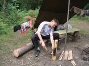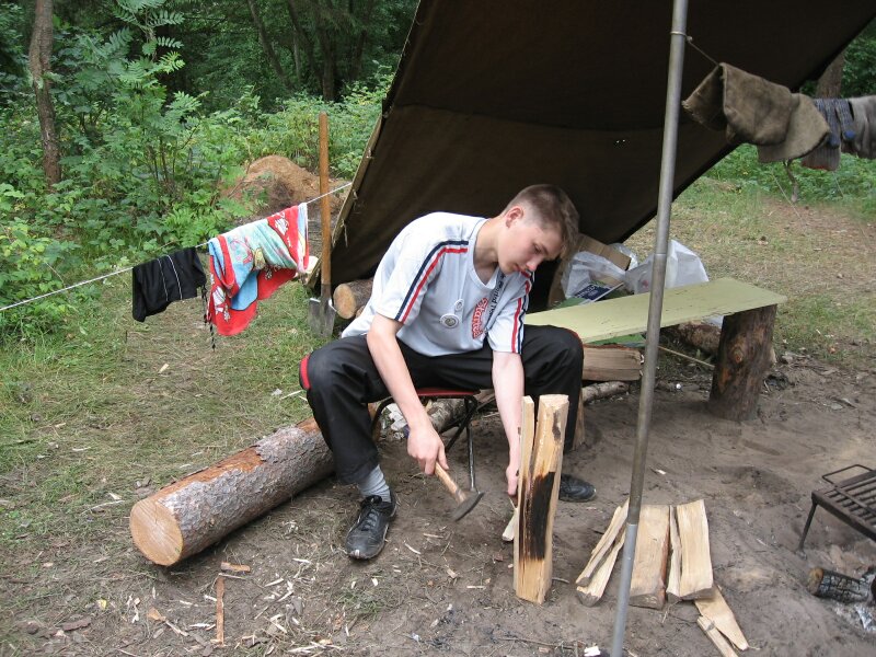 После обеда мы совершенствовали свои знания в отдельных областях науки, а вечером состоялся «Аукцион блюд» на лучшее кулинарное изделие/созданное в походных условиях. Главным шеф-поваром нашей команды были Настя Черника. Мы затратили много сил и продуктов, но это окупилось с лихвой: в упорной борьбе мы выгодно продали свое блюдо, выкупили чужое и еще сорвали аплодисменты. Вечером мы пели у костра и наслаждались игрой наших гитаристов Димы Базурина и Димы Малетина. После отбоя в палатках мы долго не могли уснуть от впечатлений... День 4-ый.