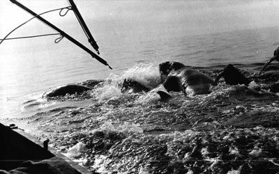 Гарпуны летят в моржей. Фото С.А. Богословского.
