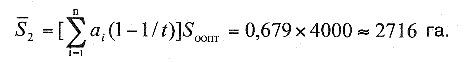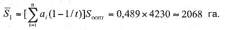 При расчете суммарное значение коэффициента а составило 0,477, срок действия заказника – неограниченный (t -> °°, следовательно, 1 – 1/t -> 1). Для зоны умеренного режима значение приведенной площади будет равно