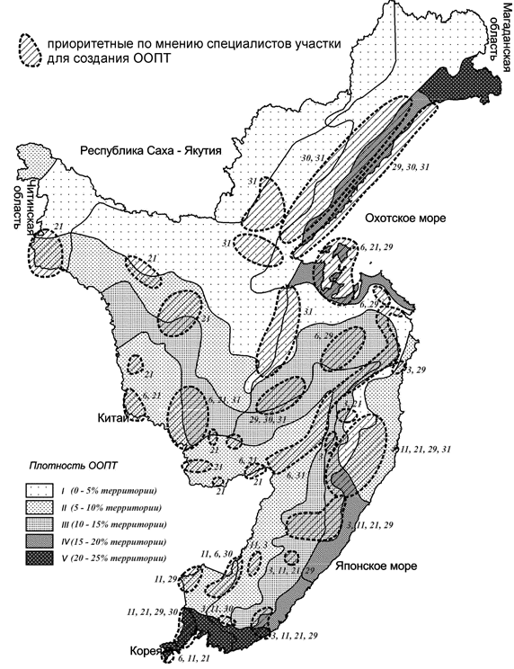 «РАЗНОЕ» ЗАПОВЕДНАЯ СЕТЬ ЮГА ДАЛЬНЕГО ВОСТОКА — НЕОБХОДИМОСТЬ ТЕРРИТОРИАЛЬНОЙ Рис. 2. Плотность существующей системы ООПТ российского