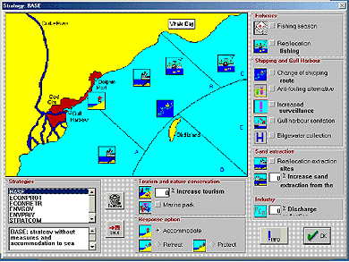 The issue 'Coastal Zones' determines the type of questions that the DSS will have to answer. Consequently it limits the scope of the databases, models and tools, as well as (the design of) the interface.