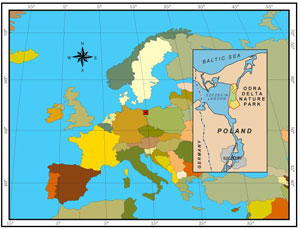 Дельта Одера представляет собой обширную лагуну, окруженную крупными водно-болотными угодьями и небольшими селами, которые находятся в агроландшафте, имеющем высокое природное значение. Польская часть дельты Одера включает почти 2900 км? с очень богатой флорой и фауной. Северо-восточная часть дельты Одера охраняется Национальным парком Волински. Дельта Одера - одна из главных ключевых территорий Европейской Экологической Сети (EECONET). Она является одним из наиболее важных мест отдыха на западно-палеоарктическом миграционном пути. Она представляет собой звено первостепенной важности между западной и восточной Европой для мигрирующих птиц. Дельта Одера является потенциальной территорией для включения в Natura 2000, когда Польша войдет в ЕС. |