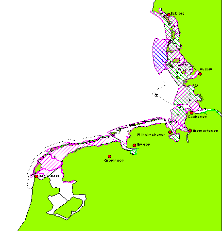 Местообитания птиц, установленные Евросообществом (в Ваддензе только предварительные территории)