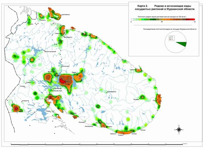 | Начало | "Кутса" | "Терский берег"| "Хибины" | "Лапландский лес" | Карта 3. Редкие и исчезающие виды сосудистых растений в Мурманской области |