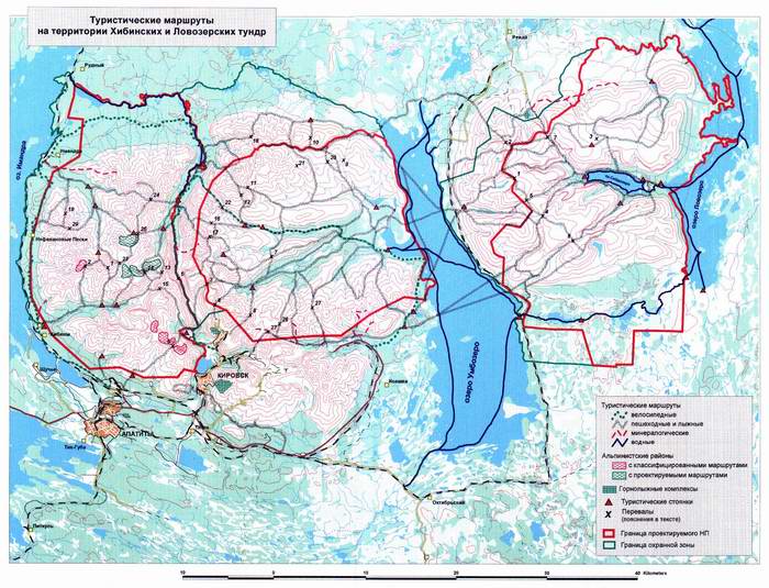 | Начало | "Кутса" | "Терский берег"| "Хибины" | "Лапландский лес" | Карта 9. Туристические маршруты на территории Хибинских и Ловозерских тундр |
