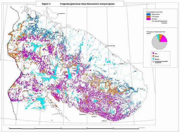 Карта 1. Старовозрастные леса Кольского полуострова