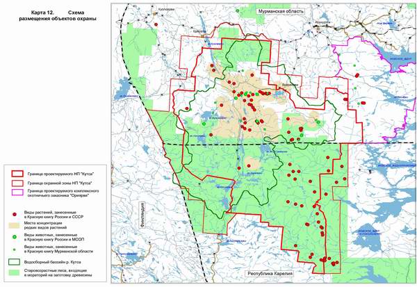 | Начало | "Кутса" | "Терский берег"| "Хибины" | "Лапландский лес" | Карта 12. Схема размещения объектов охраны |