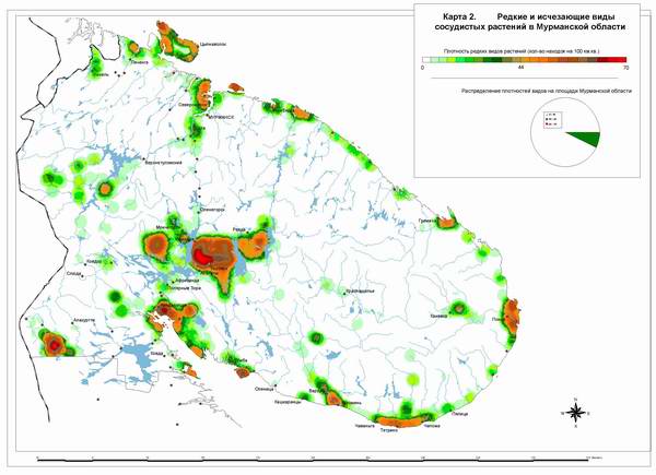 | Начало | "Кутса" | "Терский берег"| "Хибины" | "Лапландский лес" | Карта 2. Редкие и исчезающие виды сосудистых растений в Мурманской области |