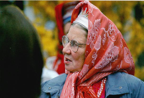 Рис. 5. Старшее поколение саамов-скольтов, проживающих в Северной Лапландии, по сей день сохраняют свои традиции (Luhta, 1998) Население Нотозерского погоста практически не изменило своего традиционного расселения. Волей судьбы все "переселения" происходили в пределах территории погоста. В первую очередь они были вызваны организацией границы между Россией и Финляндией, затем созданием колхозов, а с началом ВОВ население выселялось с территорий воинских частей, мест подверженных авионалетам (Ристикент). В дальнейшем вынужденное переселение было вызвано строительством каскада Туломских ГЭС и затоплением территории нижним и верхним водохранилищами. Географически были изменены места зимних поселений саамов. Но они оставались в пределах досягаемости своих промысловых угодий. Проводимые в данном районе совместные российско-норвежские исследования по картографированию памятников саамской культуры Нотозерского и Сонгельского погостов показали, что саамы Нотозерского погоста продолжали заниматься промыслами на своих родовых угодьях до массовой вырубки лесов в районе в 1957-1970 гг. В семидесятые годы в районе было уничтожено оленеводство. Саамы в основном работали на заготовке леса, в нетрадиционных областях развивающегося в районе сельского хозяйства.