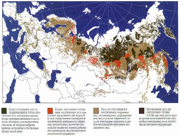 Рис. 1. Угрожаемые неосвоенные леса Европы и России (по: Брайант и др., 1997) Одним из таких массивов является так называемый "Лапландский лес" Основные причины высокой степени сохранности этого массива кроются в специфической