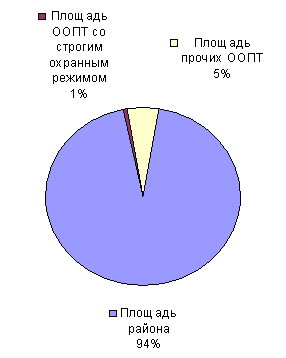 Рис. 20. Процент ООПТ в Терском районе от площади района Единственный заказник в районе, который выполняет функцию комплексной охраны видов и их среды обитания. Включает довольно крупный массив старовозрастных лесов (Карта 7).