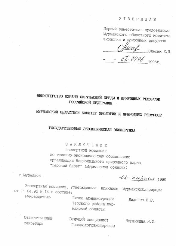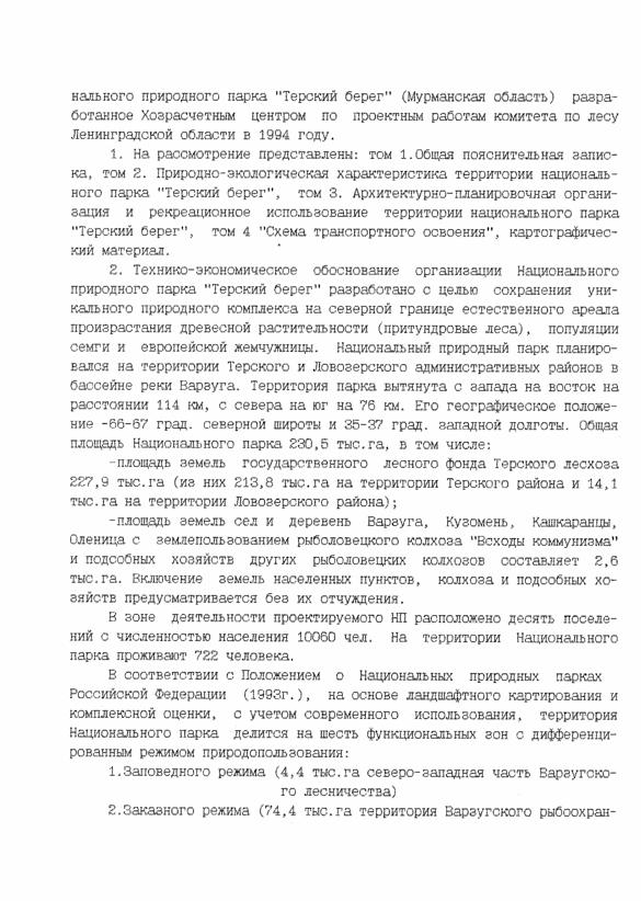 | Начало | "Кутса" | "Терский берег" | "Хибины" | "Лапландский лес" | ПРИЛОЖЕНИЯПриложение 8. Заключение экспертной комиссии по технико-экономическому обоснованию национального природного парка "Терский берег"