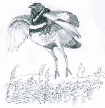 Максим Дементьев. Токующий стрепет. Эскиз. 2016 |