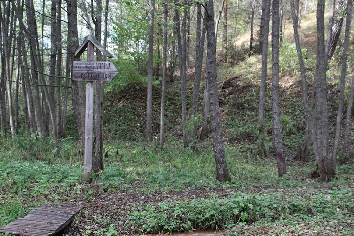 Валерий Новиков, главный научный сотрудник парка, провел замеры температуры воды в родниках и взял пробы водорослей. Был намечен фронт работ на будущее – установка моста через ручей, вывоз остатков сарая.