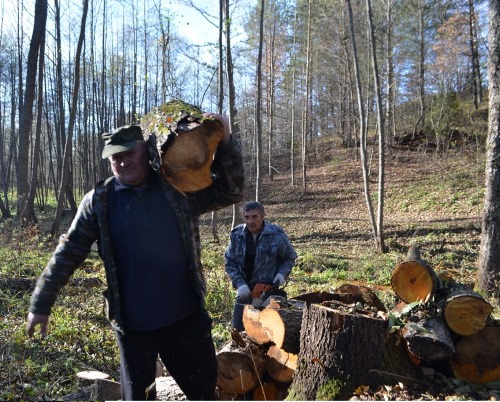 распилить на чурбаки и вынести оставшиеся упавшие деревья;
