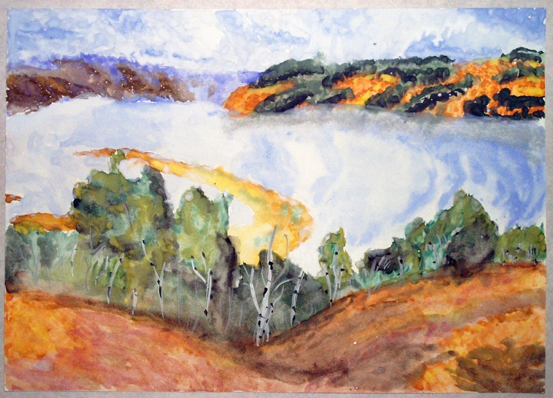 "Туман над рекой", Киреева Аля, 4 кл., Бебелевская средняя общеобразовательная школа Калужской области, спецприз – фотоаппарат