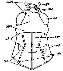 Переднеспинка - здесь верхняя часть переднего сегмента грудного отдела насекомых. Обычно очень хорошо развита и прикрывает сверху средне- и заднеспинку, а также основания крыльев.