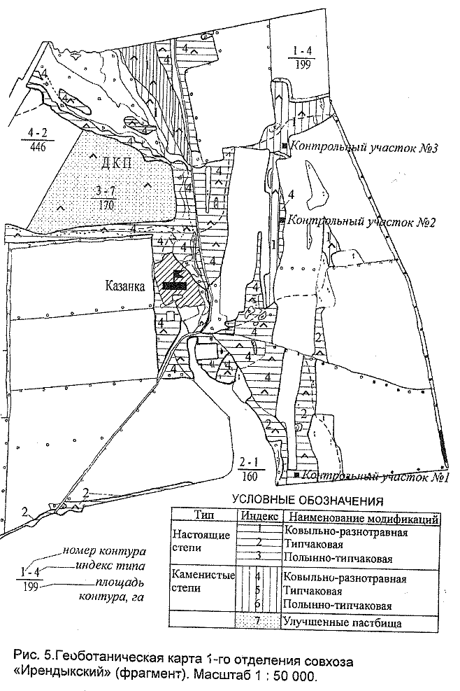 | Рис. 5. Геоботаническая карта 1-го отделения