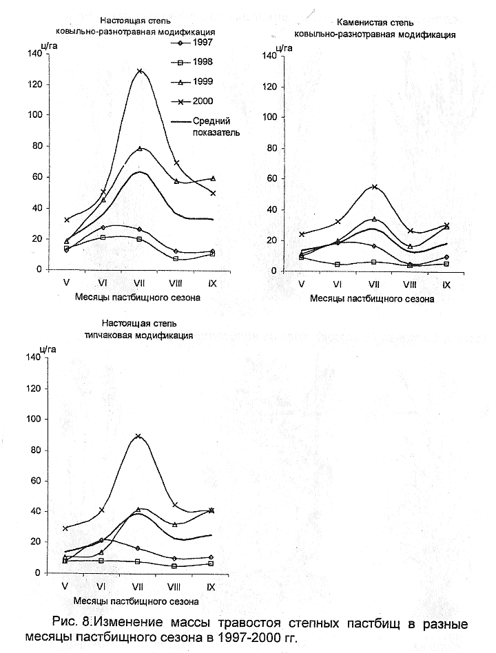 | Рис. 8. Изменение массы травостоя степных пастбищ
