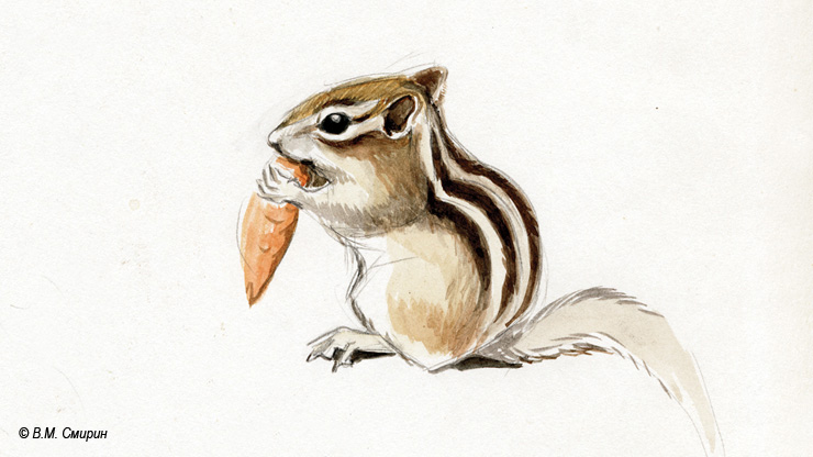 В.М. Смирин. Детеныш бурундука. Фрагмент наброска. Звенигородская биостанция, 1970